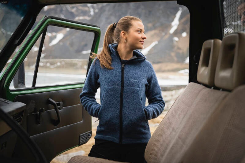 Warme wollen fleece jacket met een urban stijl, gemaakt van merinowol en gerecyclede materialen, geschikt voor gebruik outdoor en in de stad.